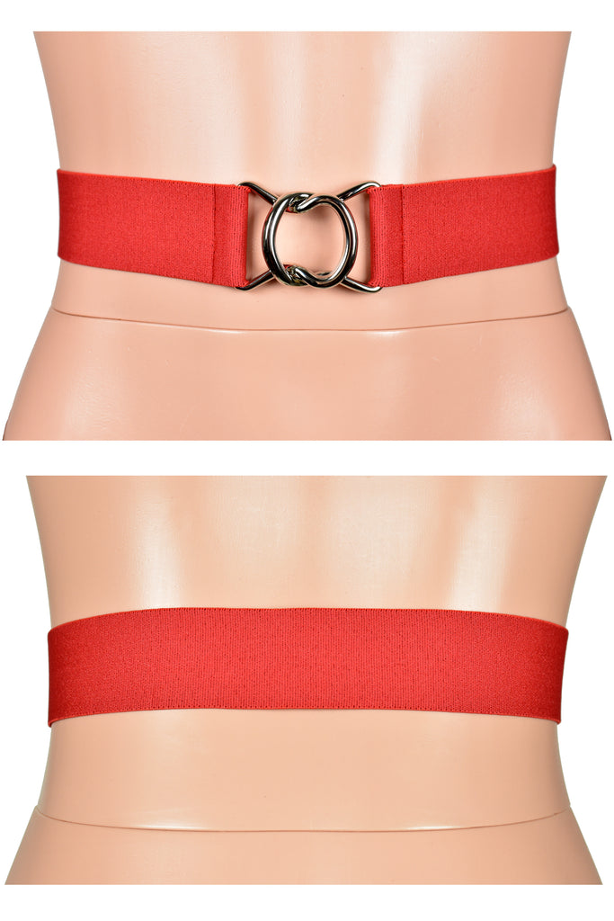 Black, Red, or White Elastic Waist Belt with Silver Buckle (1.5" wide)