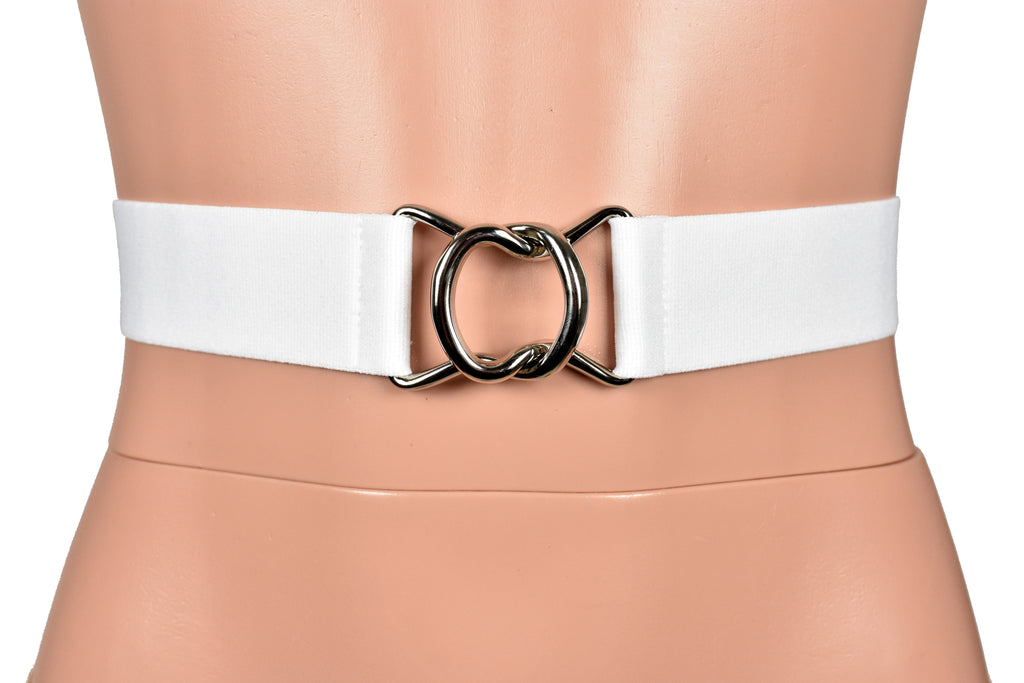 White Elastic Waist Belt with Silver Buckle (1.5" wide)