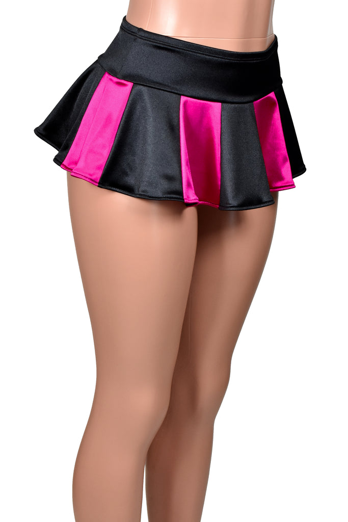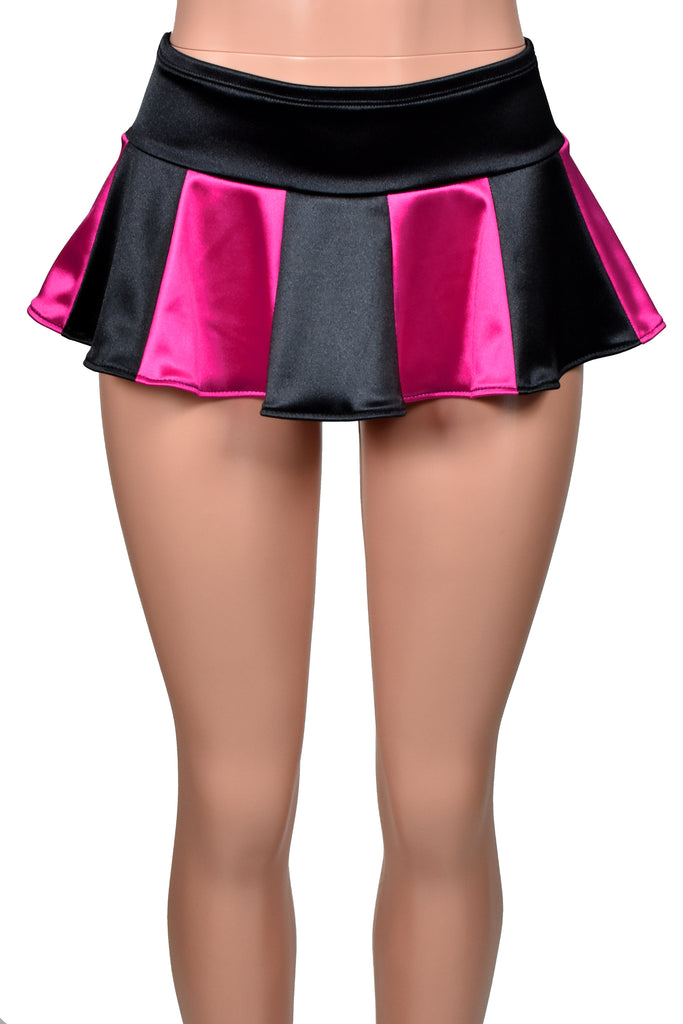Black and Hot Pink Stretch Satin Micro Mini Skirt