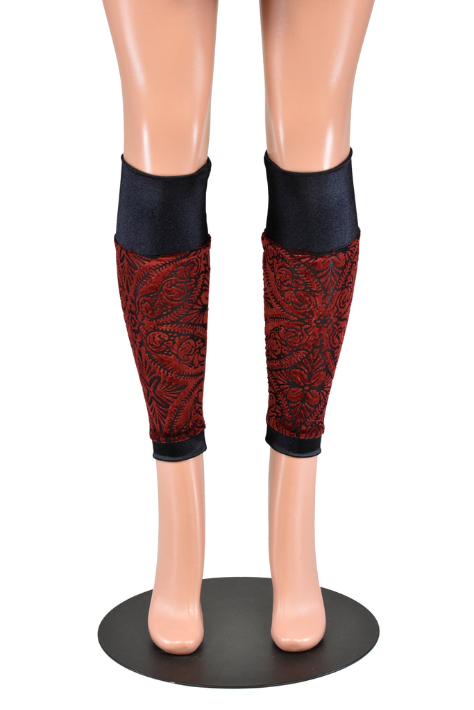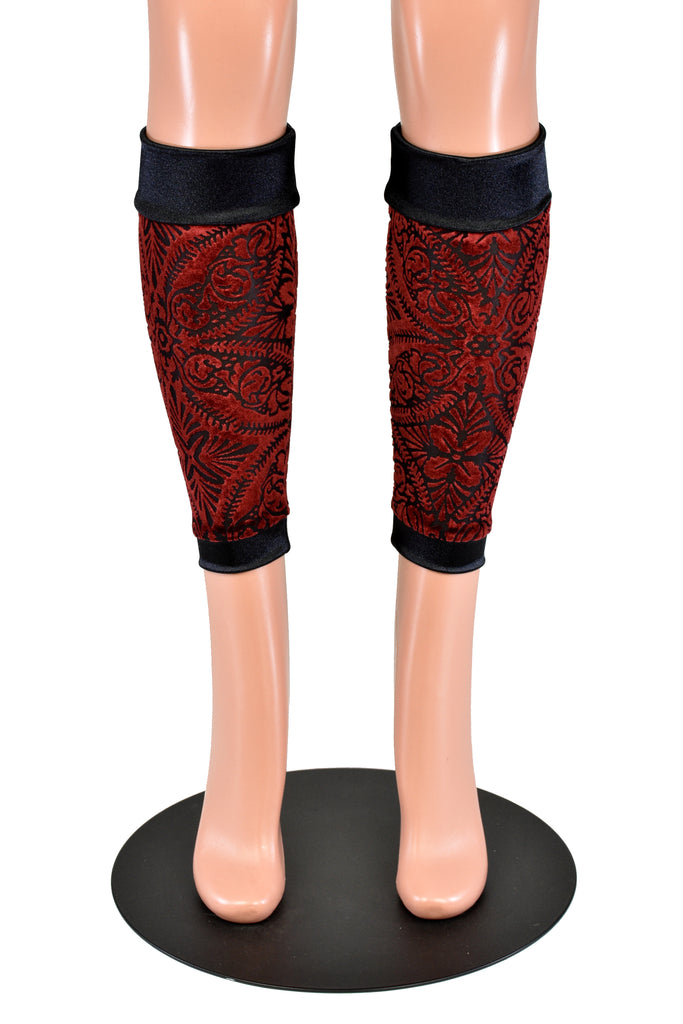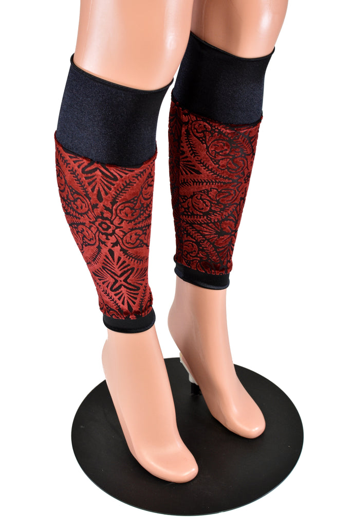 Red and Black Burnout Velvet and Satin Leg Warmers