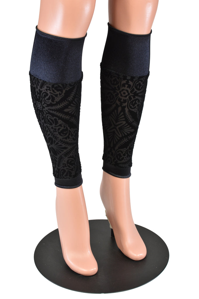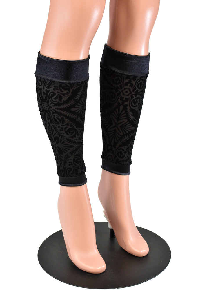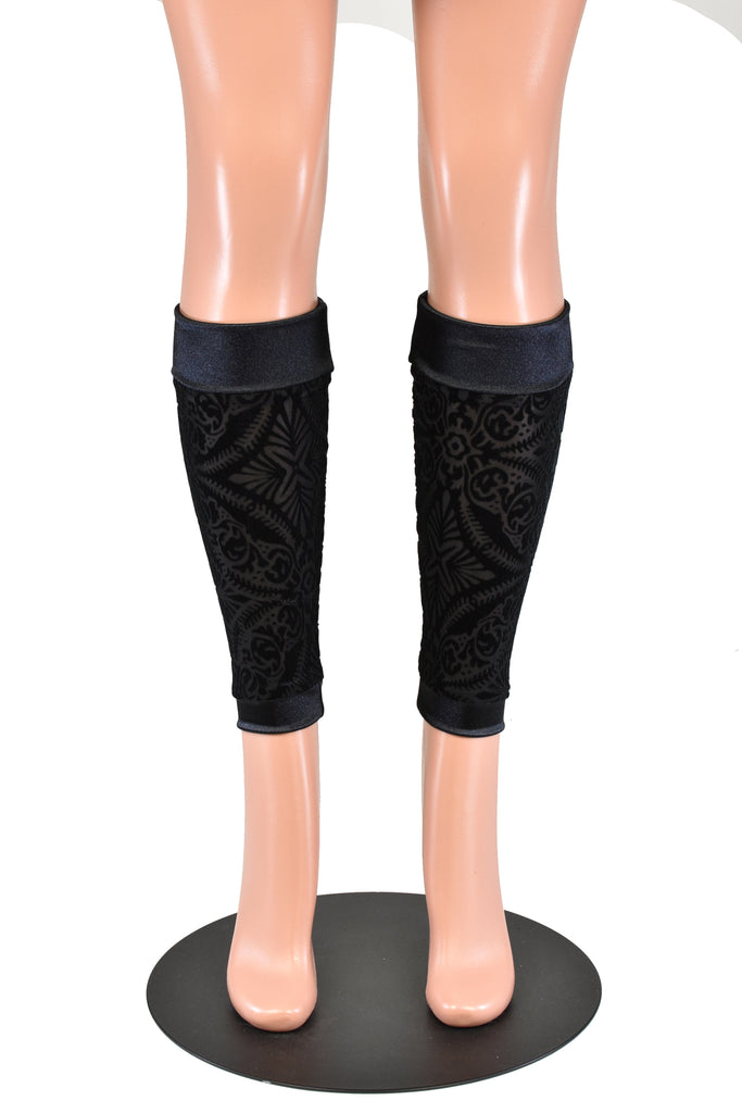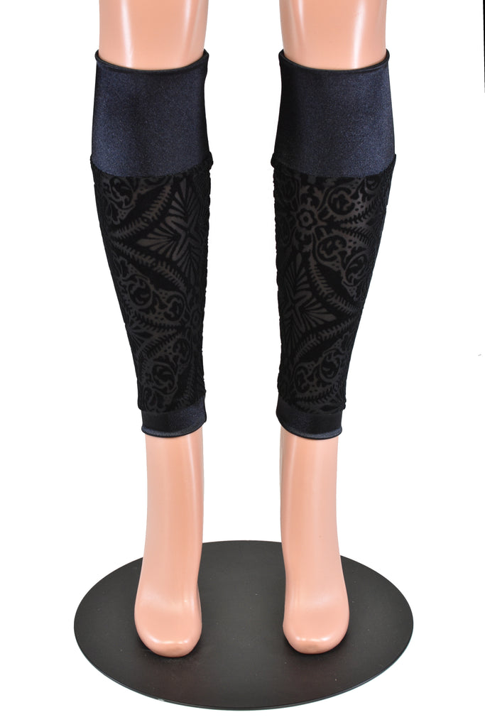 Black Burnout Velvet and Satin Leg Warmers